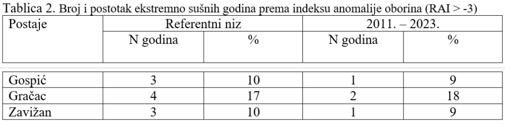 Povećanje broja sušnih mjeseci je bilo statistički značajno na području Gračaca. Za meteorološke postaje Gospić i Gračac u brdskom vegetacijskom pojasu broj ljetnih mjeseci s manjkom vode u tlu povećao se s jednog (kolovoz) na dva mjeseca (srpanj i kolovoz). Na području Zavižana u pretplaninskom vegetacijskom pojasu povećao se broj mjeseci sa suficitom vode za jedan mjesec (srpanj). To ne znači da je u ekosustavu više vode biljkama na raspolaganju, jer je lipanj nekada bio mjesec sa suficitom vode u tlu, što sada nije više slučaj.
