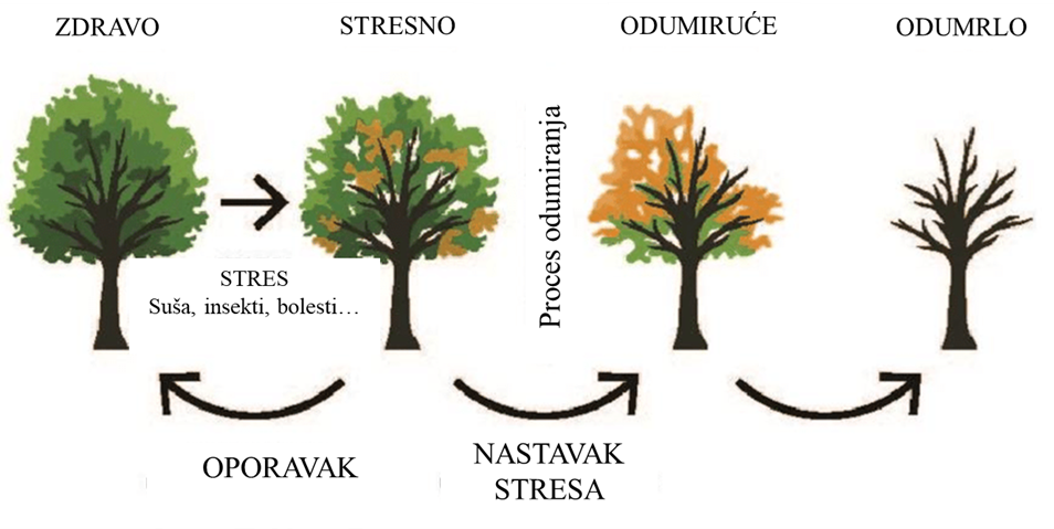 Odabir stabala za sanitarnu sječu u RH obuhvaća sva suha stabla te stabla sa stupnjem defolijacije krošnje iznad 60 %. Preporuka je da se kriterij promijeni te da se za sanitarnu sječu primjenjuje kriterij od 80 % osutosti krošnje.