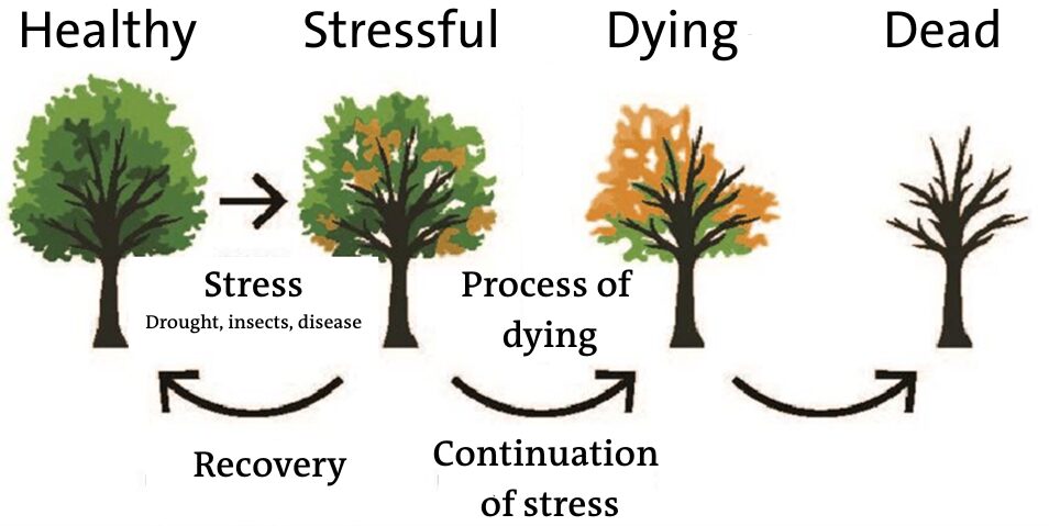 Based on the research results, we believe that the percentage of crown defoliation as a criterion for the sanitary selection of trees should not be applied uniformly to all forest tree species (pedunculate oak, common beech, and common silver fir). When determining the crown defoliation criterion for sanitary felling, it is necessary to consider the ecological requirements and ecological valence of the species, the percentage of trees that have reduced crown defoliation, and the economic value of the wood.